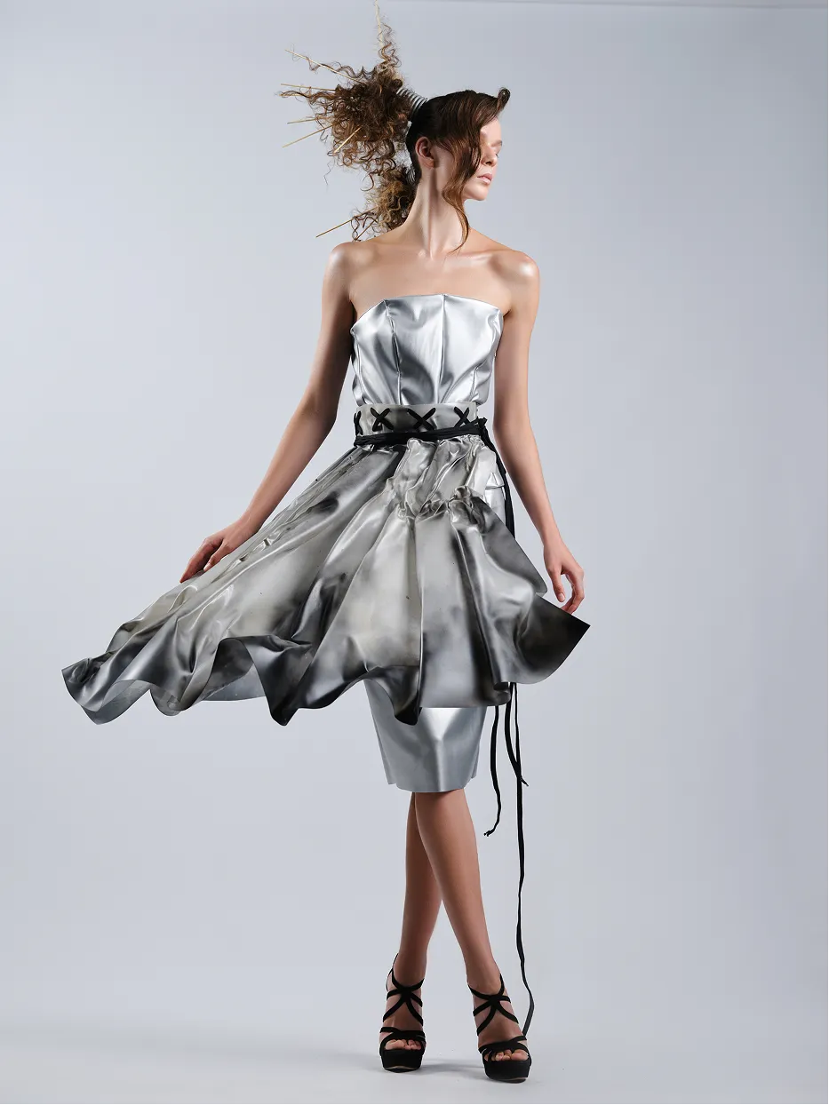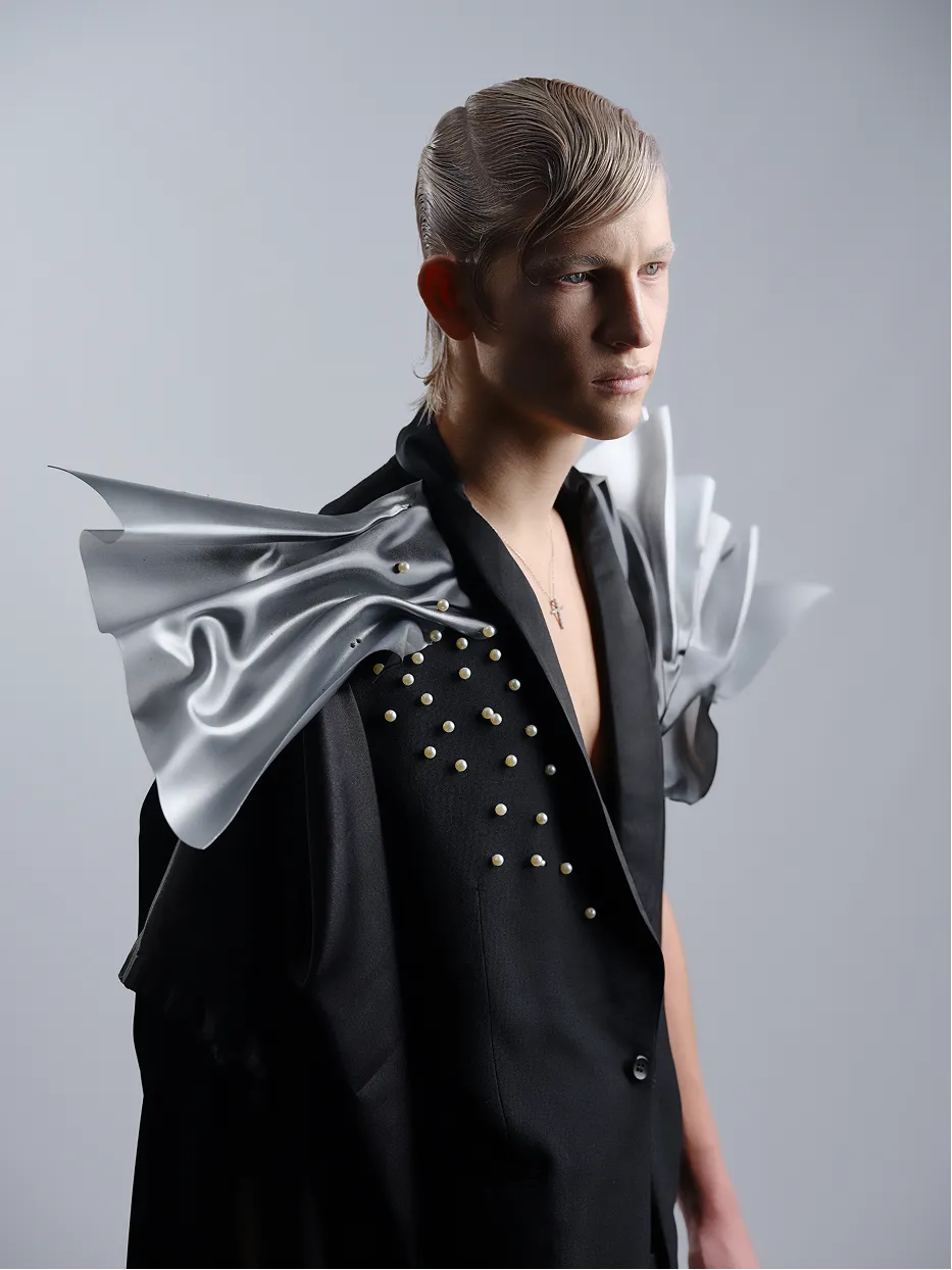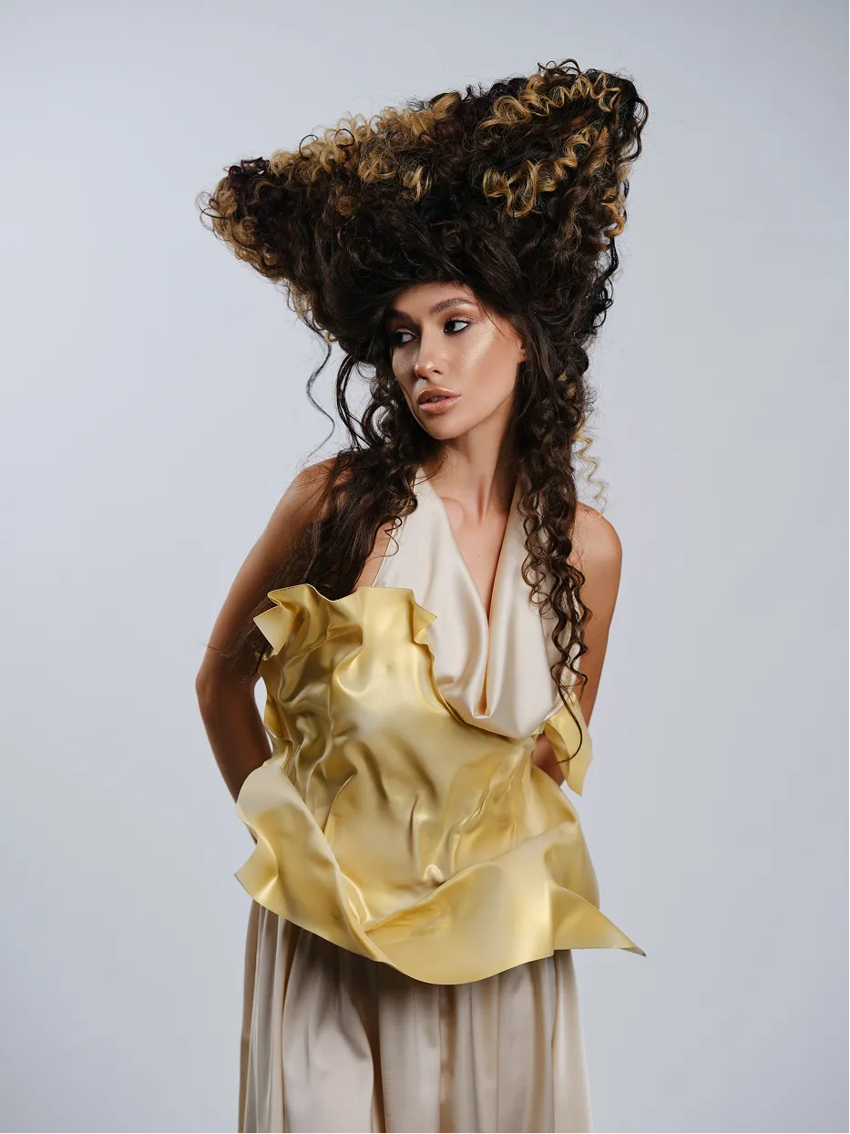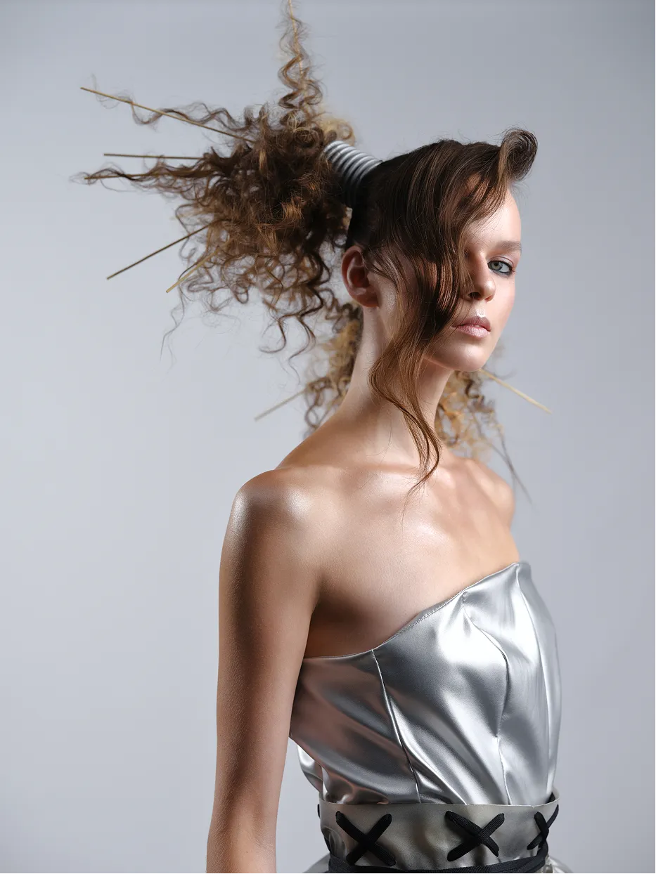 Колекція Magnetica — це дослідження сили притягання у світі моди. Об’ємні форми, металеві текстури та драматичні силуети створюють відчуття невидимої енергії, яка вирує між образом і глядачем. Зачіски стають продовженням костюмів — то нагадують вибух, то скульптуру, то витончену геометрію. Контраст світла й тіні підкреслює головне: у центрі цієї колекції завжди людина, яка випромінює власне поле сили. Magnetica — це про неминуче тяжіння. Про стиль, який не можна ігнорувати. Про момент, коли мода стає енергією, що змінює простір.