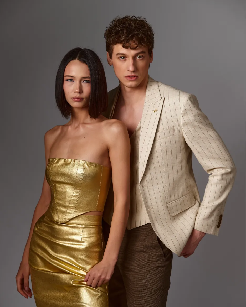 Колекція Modern Archetypes досліджує, ким ми є сьогодні і які образи створюємо для світу. Тут класичні силуети костюмів переплітаються з металевим блиском і природними текстурами, а зачіски стають віддзеркаленням характерів — від впевненого лідера до вільного шукача. Це сучасні архетипи: ті, хто задає тон у бізнесі, моді, культурі та щоденному житті. Вони різні за стилем і настроєм, але їх об’єднує одне — сила індивідуальності. Modern Archetypes — це колекція про нову мову впевненості, де стиль стає кодом ідентичності