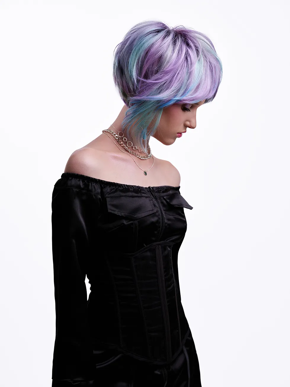 Колекція Spectrum — це вибух кольору, що перетворює волосся на живу палітру. Тут кожен відтінок — це голос, кожна зачіска — маніфест свободи бути собою. Неон, пастель, кислотні акценти й геометричні малюнки працюють як візуальний код ідентичності. Вони розповідають історії про бунт, ніжність, силу й іронію — усе в одному полотні.